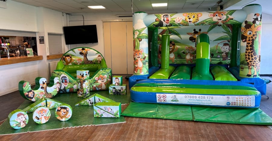 Get ready to swing into fun with our one -of-a-kind jungle theme soft play and bouncy castle package - the only one of its kind in the UK! perfect for little explorers, this sensory-packed package invites kids to let their imaginations run wild and tumble into a world of textures and colours. Designed to spark imaginations and ignite adventure, it's a roaring good time for children who dream of safari quests and jungle thrills. Unleash their inner lion cubs and let the expedition begin - right in your own back garden!