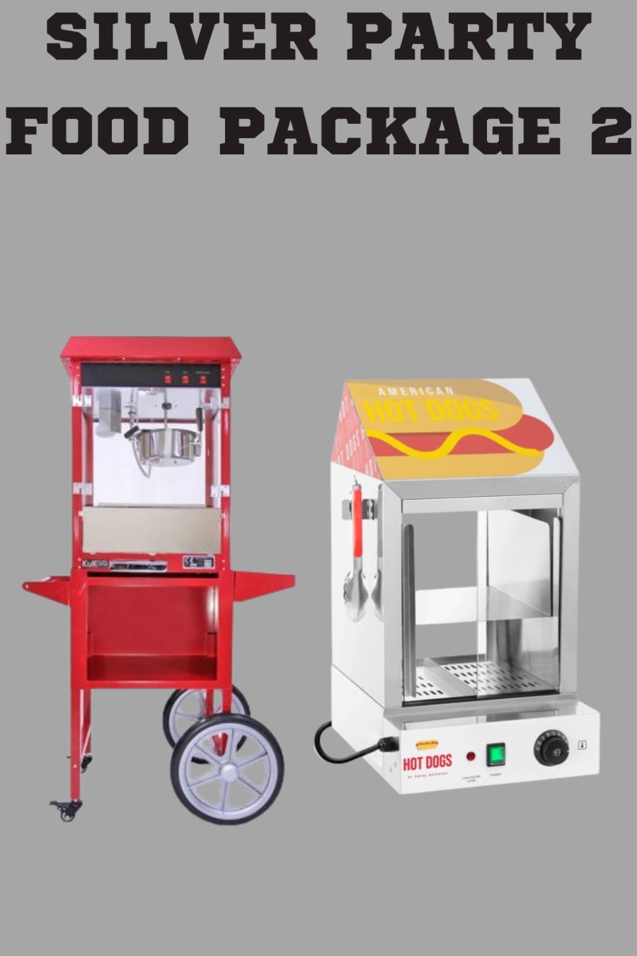 Our Popcorn machine and Hotdog machine package comes with both of our amazing machines ready to make at least 50 servings of delicious and warm popcorn and up to 24 hotdogs at a time.